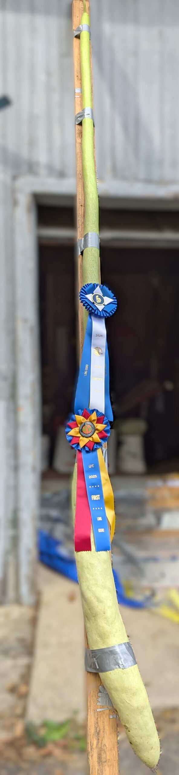 Grower’s best LG of 2025. 1st place at the Durham Fair Ct. weighoff. Great genetics with the Ansems and Faust genes. Both parent seeds have grown gourds over 150″. Free seeds from Steve’s Giants with every order.