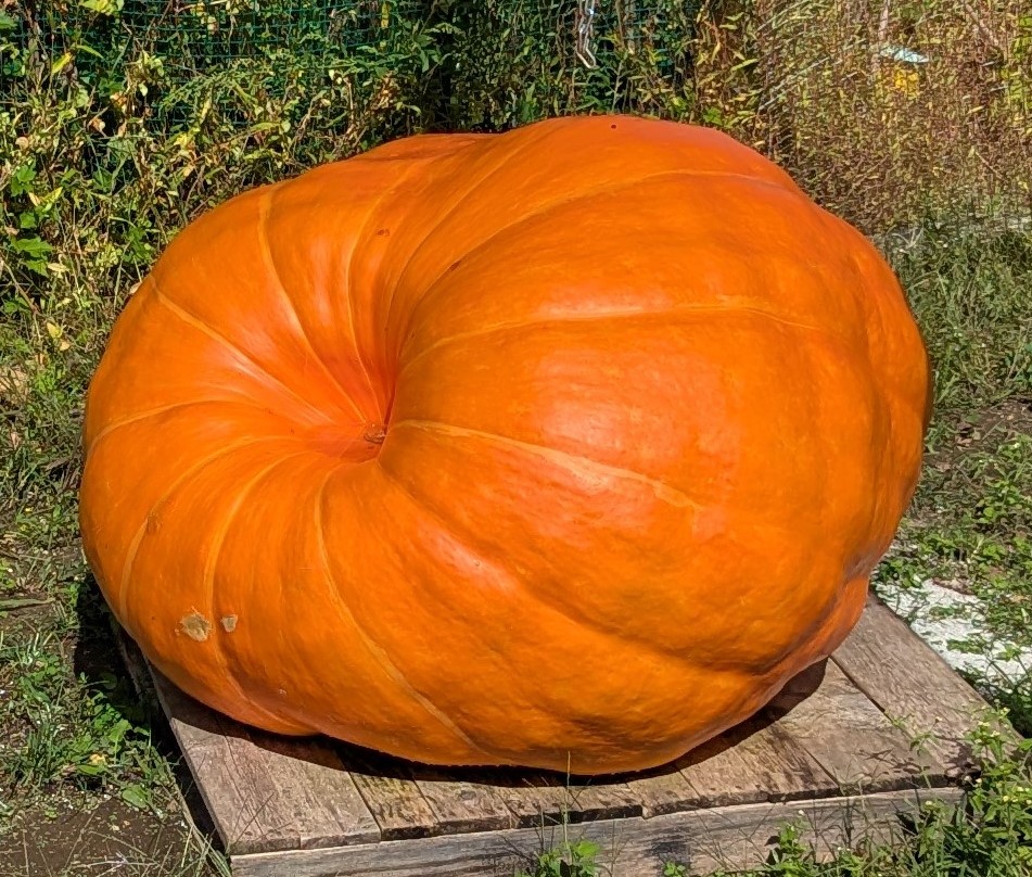 This pumpkin was a beautiful orange. It placed 2nd at the Bethlehem, Ct Fair. Orange genetics from the 1464 Brown will carry through to future pumpkins from this seed.